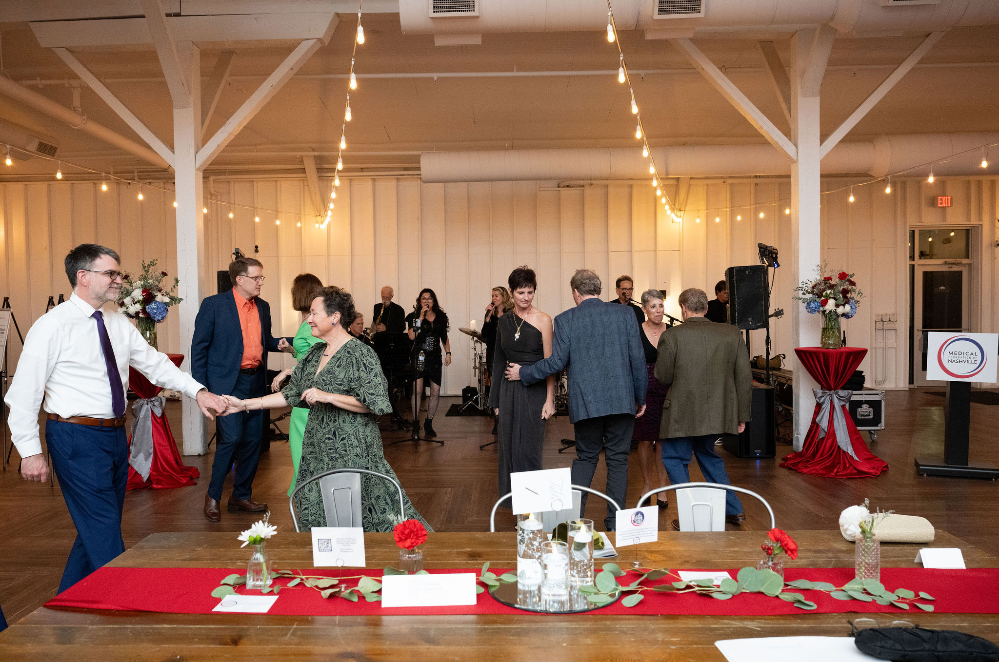 On Saturday, October 25, 2025, physicians, donors, and other constituents gathered to celebrate physicians, the practice of medicine in Middle Tennessee, and the great work of the Medical Foundation of Nashville. More than 100 guests enjoyed a three-course dinner, live music, and a silent auction, along with remarks from Board Chair Marilynn Michaud, MD, highlighting the Medical Foundation of Nashville’s impact and the 20th anniversary of Project Access Nashville Specialty Care. The evening brought physicians together in a celebratory setting and raised funds to support the Foundation’s work, made possible by sponsors HCA Healthcare / TriStar Health, Baker Tilley x KraftCPAs, SVMIC, and Tennessee Oncology, as well as our patrons, ticket purchasers, and donors. Click here to see the full gallery of photos from October 25, 2025.